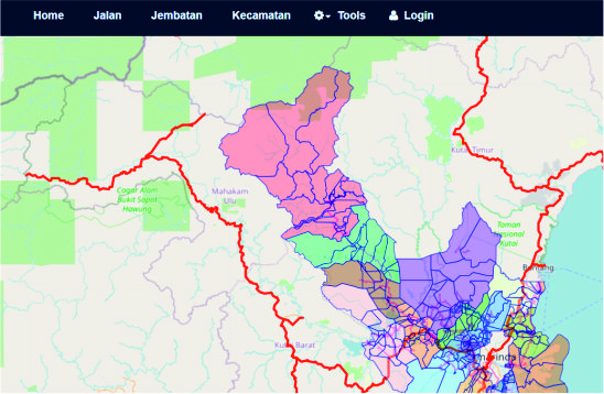 Web GIS Binamarga Kukar adalah sistem informasi geografis yang digunakan untuk memetakan dan memvisualisasikan data jalan menggunakan teknologi web. Sistem ini memungkinkan pengguna untuk melihat peta jalan dan informasi terkait seperti status jalan, kondisi jalan,tipe perkerasan, lokasi jembatan, dan informasi lainnya. Dalam webgis jalan, data jalan diintegrasikan dengan data geografis, seperti citra satelit atau peta topografi, sehingga pengguna dapat memvisualisasikan data secara lebih interaktif dan realistis.